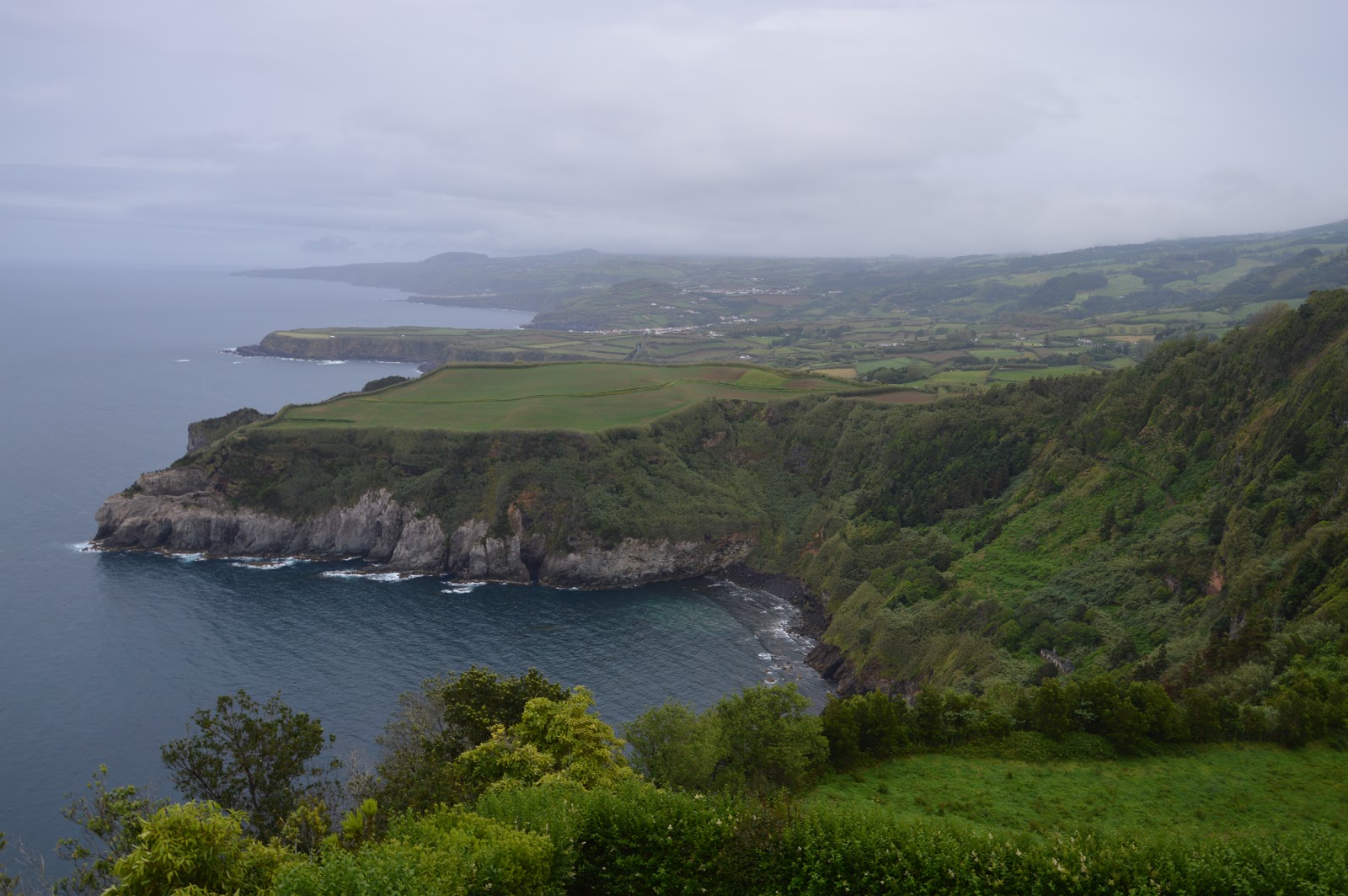 Man åker alltså inte till Azorerna för sol och bad utan de tyngsta argumenten till att välja just denna ö-grupp som destination är naturen, naturen och naturen. Men vi håller oss till huvudön Sao Miguel, också kallad Ilha Verde, direkt översatt: "Gröna ön" i detta inlägg. Låglandet består mestadels av fält och ängar. Kommer man en bit upp så finner man vinrankor och lummig grönska som påminner om regnskog. Ön är en vulkanö och på den östra delen av ön finner man varma källor och "mud pods" Längs med kusten möts man av dramatiska vyer. Inte minst på öns östra spets: Nordeste. I öns mittremsa finner man flera toppar och på två av dessa ligger de berömda sjöarna; tvillingsjöarna och Logoa do fogo. Jag skulle inte råda någon att åka till Azorerna någon annan tid på året än juni- juli- augusti, egentligen med endast ett argument: Hortensia! Denna vackra blomma pryder hela Sao Miguel (och även Flores). Det går inte att beskriva hur vackert det är att komma körandes längs med en väg kantad av hortensia i olika kulörter. Eller att få en vacker utsiktsbild med blomman i förgrunden. Innan avresa googlade jag som en galning när hortensian blommar på ön. På en sida står det juni- juli och på en annan sida påstår författaren att blomman blommar från mitten av maj till början av oktober, men att bästa tiden är juli- augusti. Det enda jag vet är att hortensian stod i all sin prakt på ön Sao Miguel när vi var där i början av juni 2017 med undantag från de högsta topparna. Men vädret kan påverka mycket så på ön Flores som ligger en bra bit längre ut i Atlanten gentemot Sao Miguel låg blomningen betydligt mer efter. Åker man i maj eller september är risken för regn och dimma större. På Sao Miguel odlas en rad tropiska frukter, bland annat ananas, papaya, guava, passionsfrukt och avokado. Det finns även teodlingar och ön gör sina egna likörer.