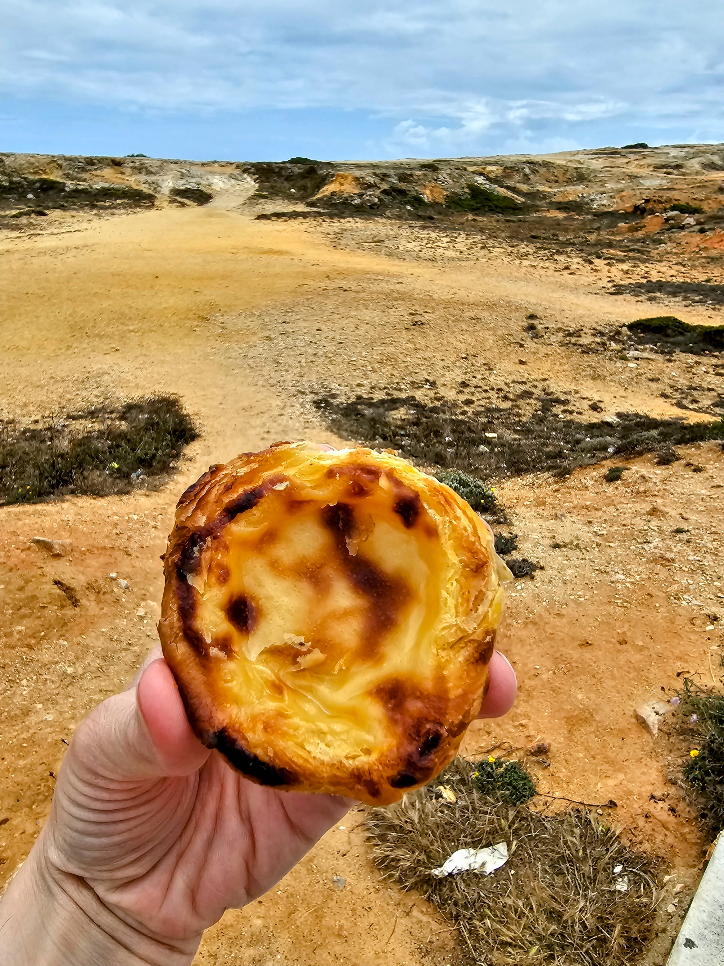 Vi stannade till vid ett litet café längs med huvudgatan och köpte med oss lite fika. Varsin ljummen pastel de nata var en självklarhet. Det Portugisiska bakverket är gjort på smördeg och med en krämig citron och kanelkräm som påminner om spanjorernas creme brulee. Det smakar lite som ett wienerbröd med med mindre fluff och mer kräm. Också en hint av kanel.